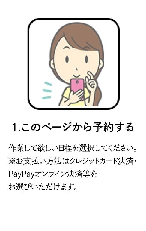 ・ご予約が集中し、ご希望の日時に伺えない場合がございます。その場合は、【メッセージ】にて改めて日時をお伺いします。